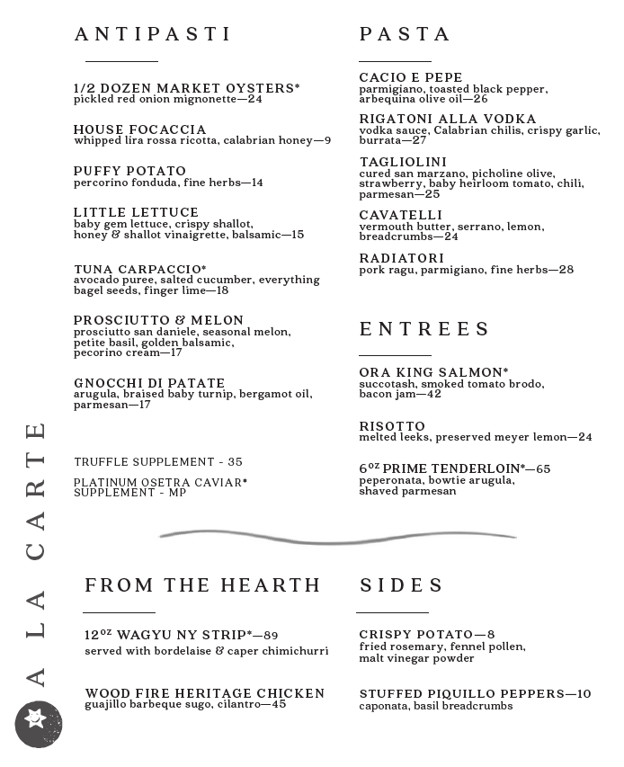 A La Carte Menu